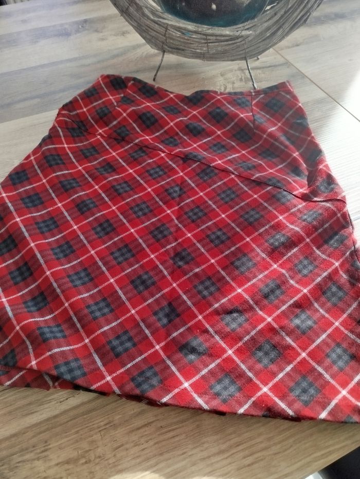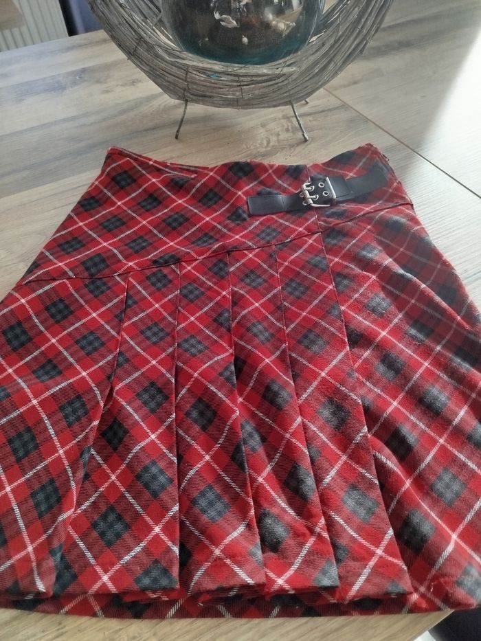 Vends jupe courte rouge et noir à carreaux. Fermeture éclair sur le côté. Taille : 36
