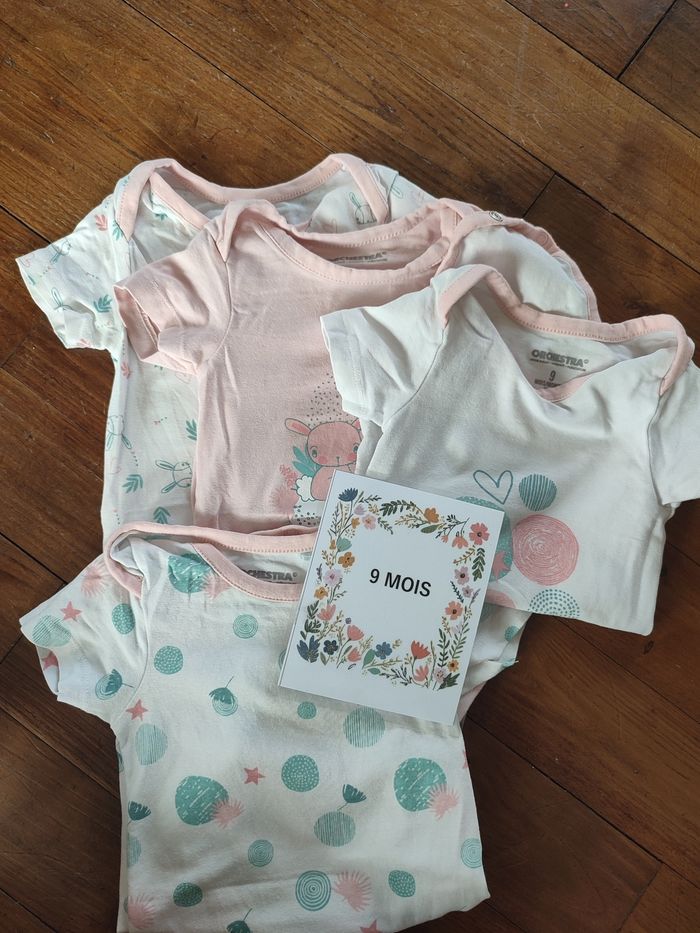 Lot de 4 bodies manches courtes Orchestra 9 mois