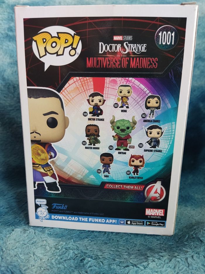 Funko Pop 1001 Wong issus de l'univers Marvel et Doctor Strange Etat de la boîte : 9/10 Légère pliure sur le dessus de la boîte Emballé dans du papier bulle donc bien protégé