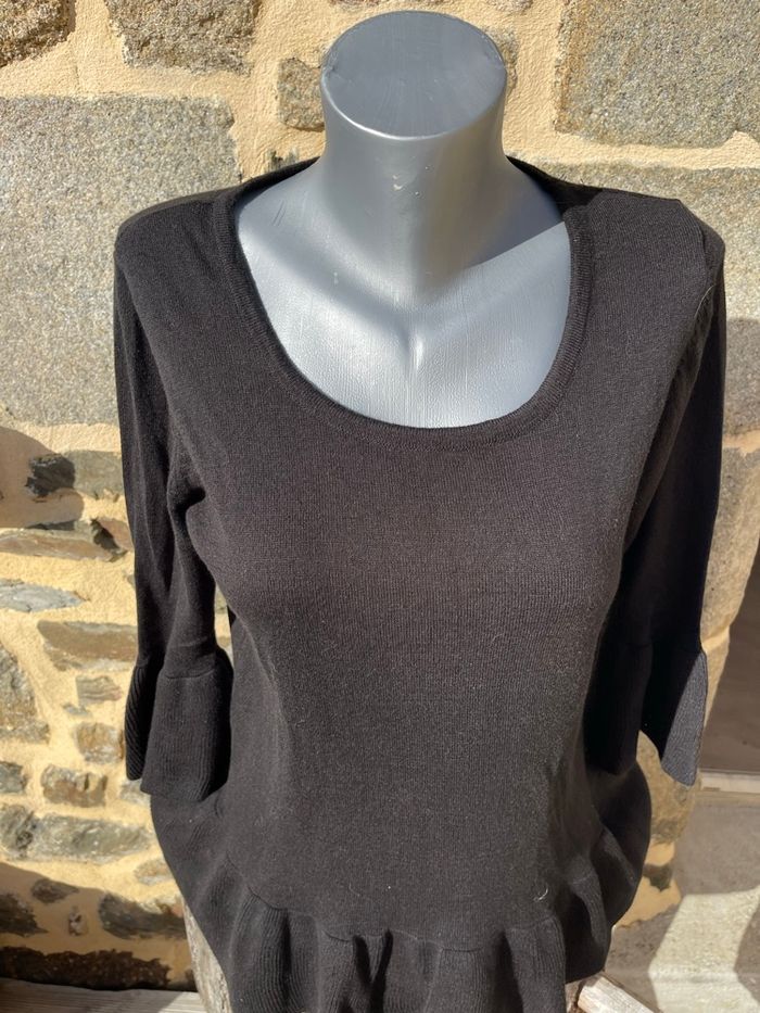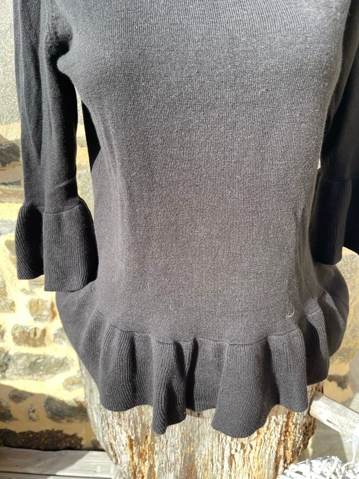 Pull en maille fine noir Avec volante sur le bas des manches et sur le bas du pull Taille L MS Mode Très bonne état