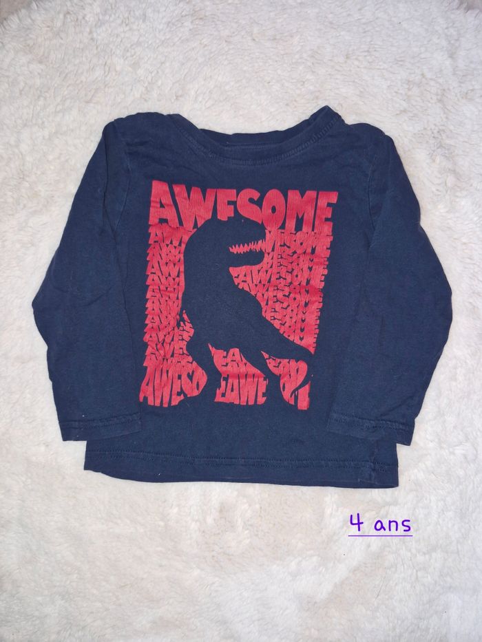 T-shirt manches longues garçon taille 4 ans en bon état pour 3 euros.