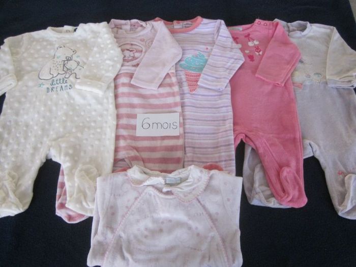6m, 5 pyjamas velours dont un neuf + 6 ème offert (couleur passée), petit kimbaloo, kiabi