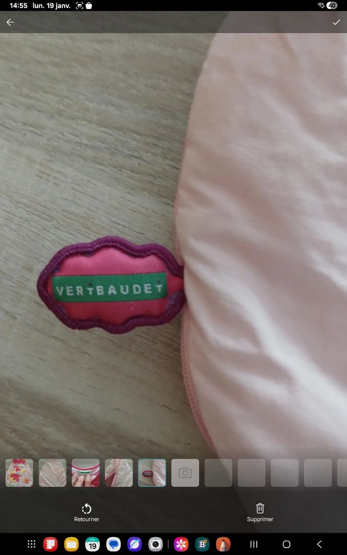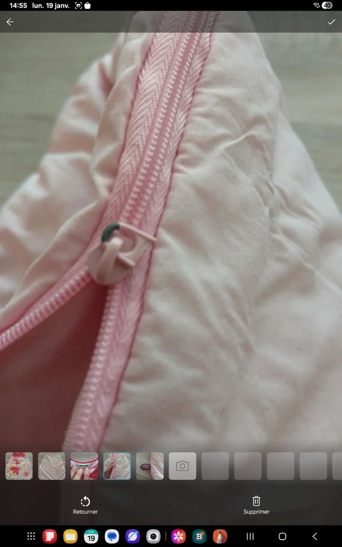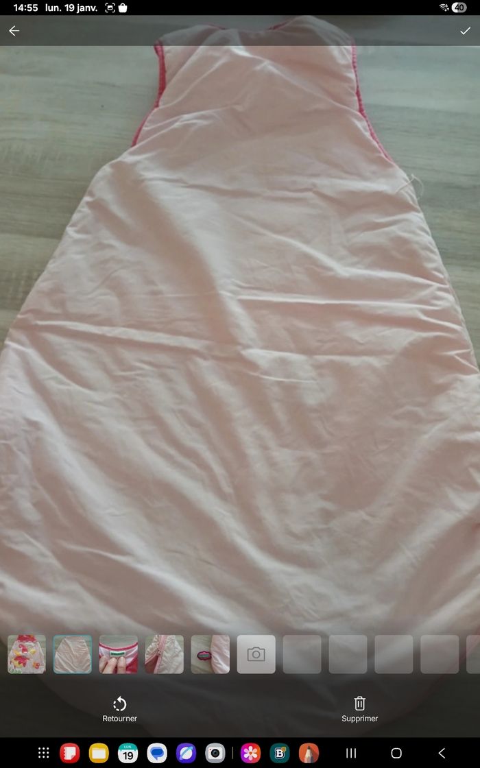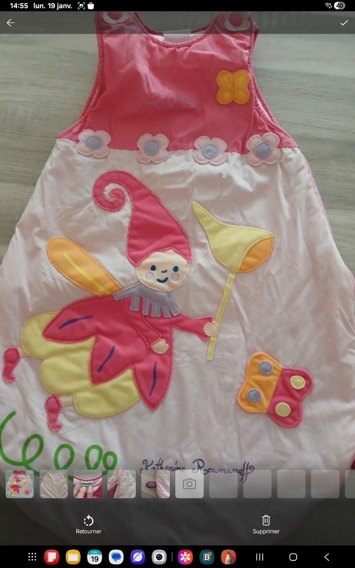 Gigoteuse rose avec fée et papillon fermeture abîmé mais n'empêche pas un bon usage 3/6 mois