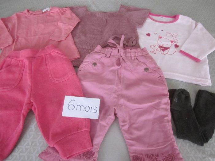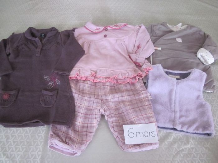 6m, veste croisée molletonnée + boléro velours + robe ml + 2 hauts ml + haut mc + ensemble 2 pièces + 2 pantalons + haut ml offert, gemo, tim pouce ...
