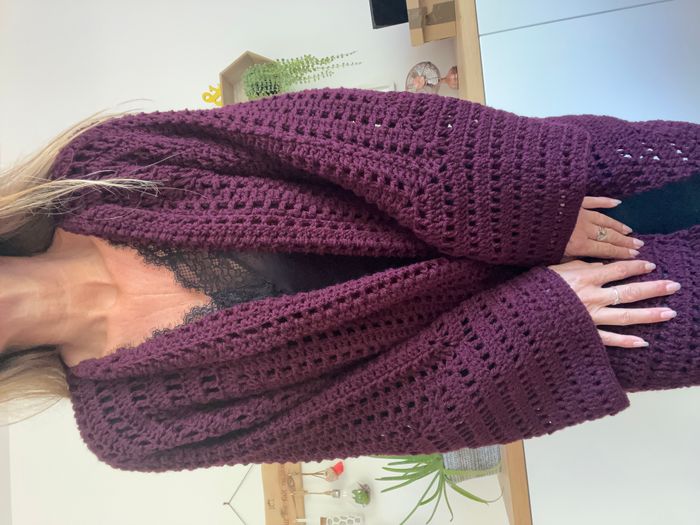 veste longue prune au crochet fait main - photo numéro 1