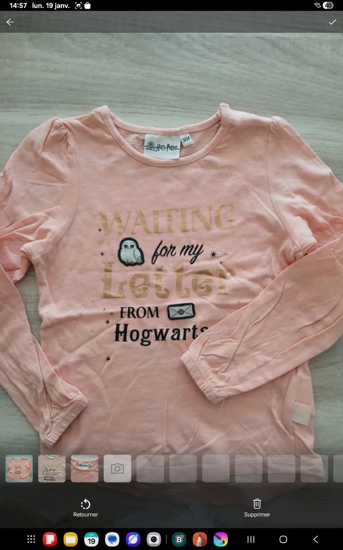 Tee-shirt saumon harry Potter 36 mois manches longues