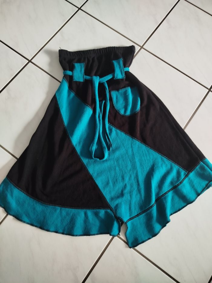 Vends ensemble super et veste bleu et noir . Jupe avec élastique à la taille. Taille 36 Marque :Sans cesse