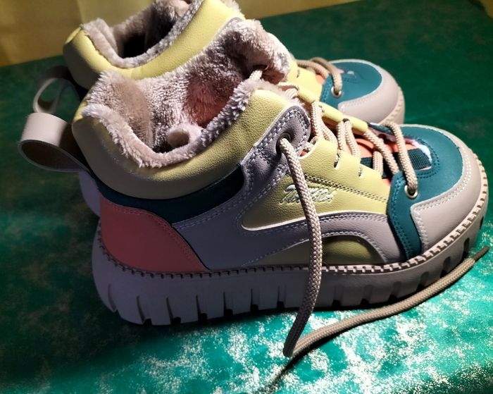 Superbes chaussures neuves, je les ai juste essayées, mais malheureusement me vont trop petites;et pour cause ce n'est pas du 38 comme écrit sur les semelles, mais du 37. Elles sont magnifiques, très chaudes, confortables... Et j'espère pouvoir me racheter les mêmes à ma pointure après l'achat(c'est pour ça que j'ai beaucoup baissé le prix, pour que ce soit rapide)Vous pouvez donc avoir confiance, l'emballage sera soigné et très vite envoyé, car exceptionnellement cette semaine j'ai la possibilité d'envoyer mes colis tous les jours. 😊