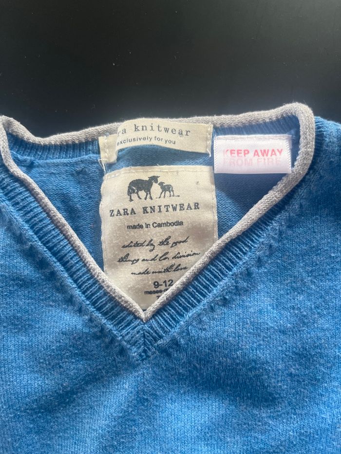 Pull col V marque Zara en taille 9-12 mois couleur bleu en bon état général