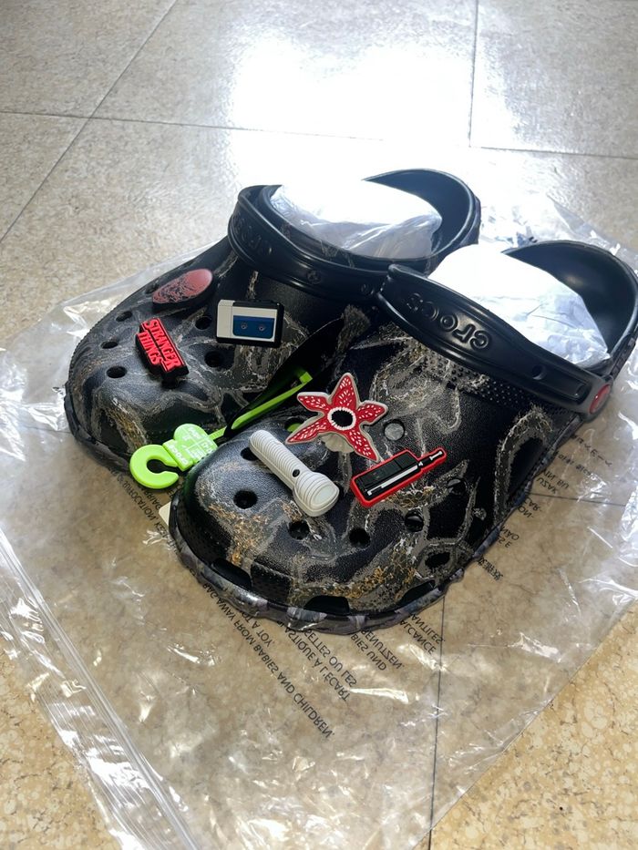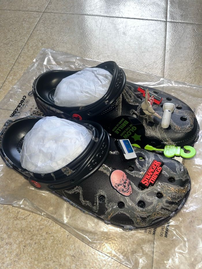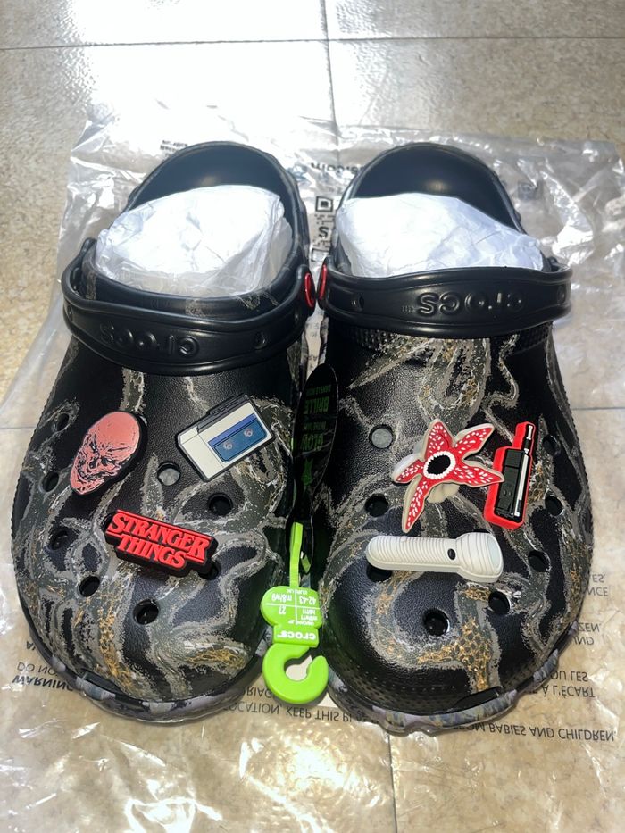 ✅ Article neuf jamais porté ℹ️ Collaboration entre Crocs et la série STRANGER THINGS 📏 Taille 42-43EU US9 WUS11 🎁 Excellente idée de cadeau 👫 Coloris neutre ⭐️ Produit très limité 📦 Envoi rapide sous 24h 🧾 Preuve d’achat disponible en cas d’achat ❓ N’hésitez pas en cas de questions je reste disponible ‼️ Essayez d’éviter Chronopost, ils dérobent souvent le contenu des colis