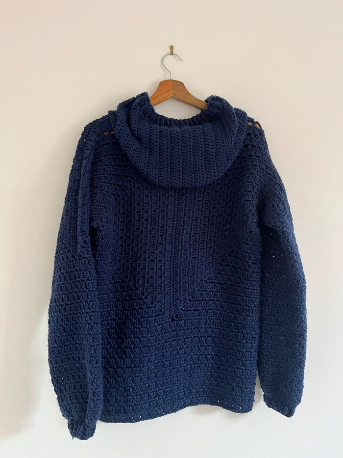 veste longue à capuche bleu marine fait main au crochet - photo numéro 2