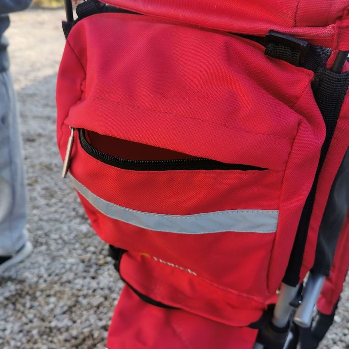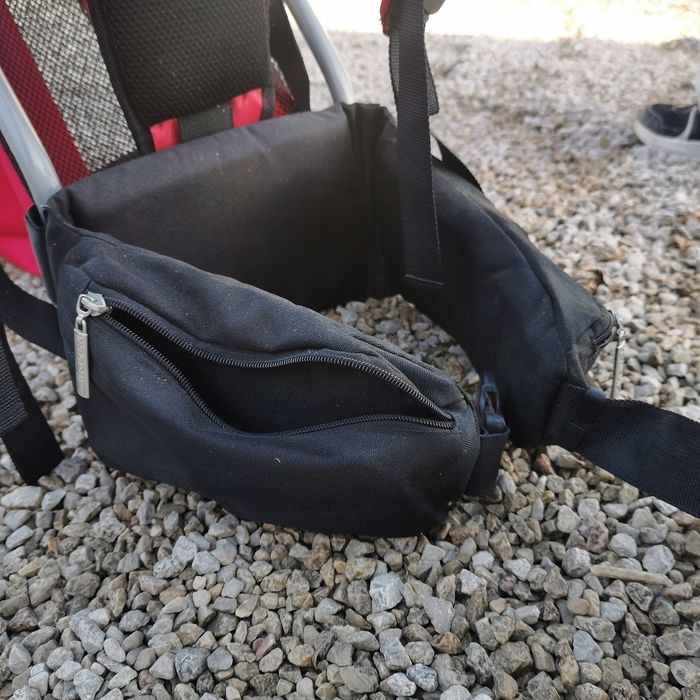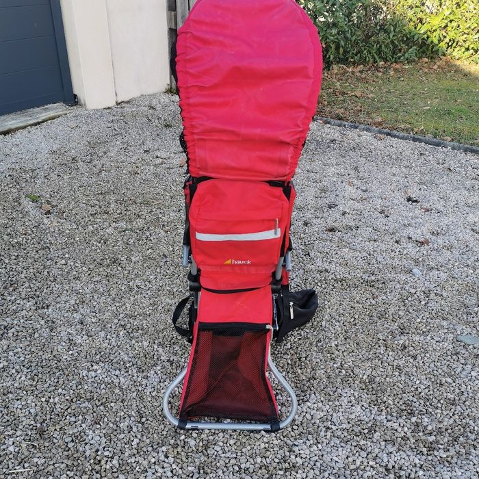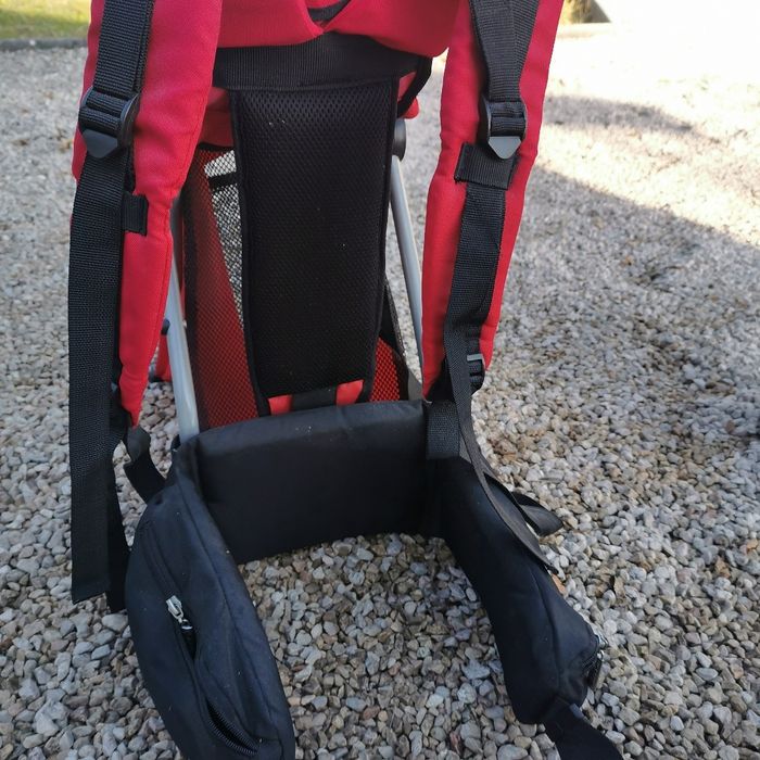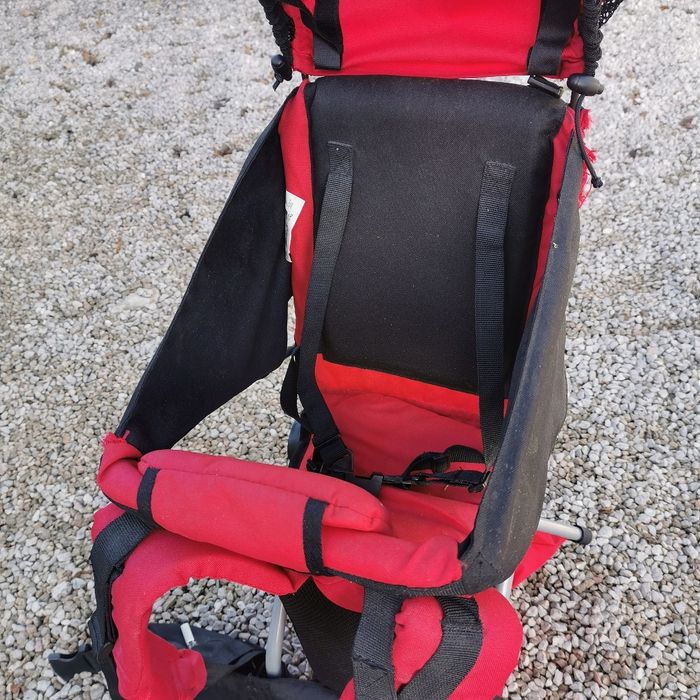 Je vends un porté bébé pour la randonnée. Très pratique et utile. - protège soleil (ou pluie) amovible - assise et dossier rambourée pour un confort de l'enfant optimal - plusieurs poches (sur la ceinture de l'adulte, derrière et dessous - l'enfant tient assis de manière stable lorsque le porte bébé est posé au sol - ceinture, bretelles, plusieurs réglages possibles pour s'adapter à tous les adultes. Utilisé, quelques traces d'usure
