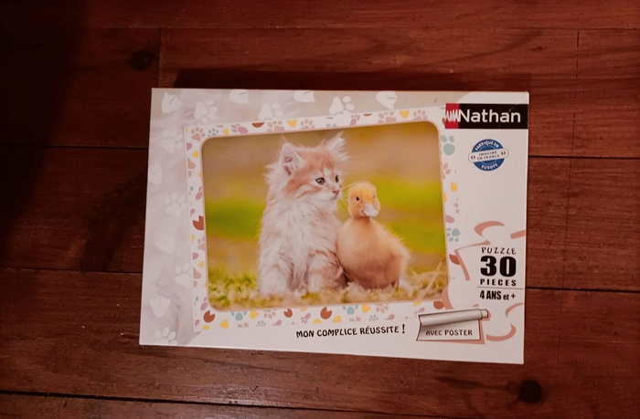 Puzzle de 30 pièces, chaton et canard. A partir de 4 ans et+.