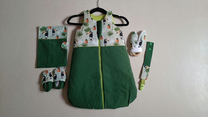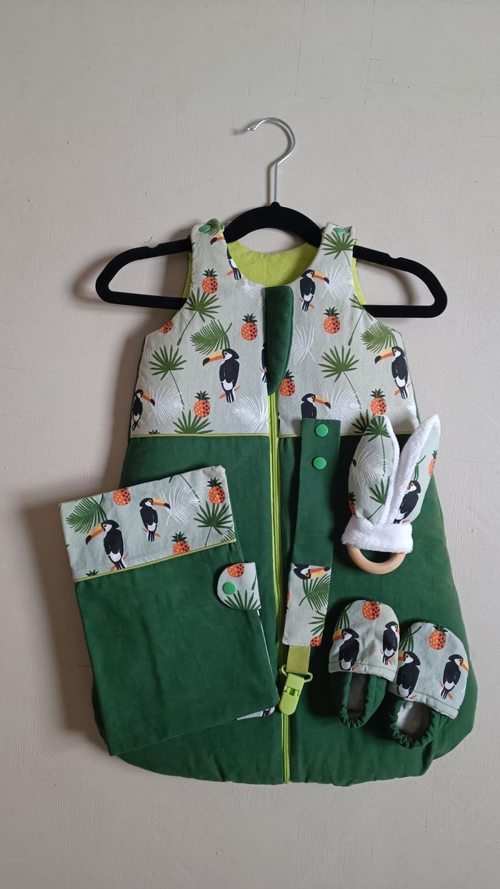 Idéal pour un cadeau de naissance Le lot comprend : - 1 gigoteuse 0-3 mois - 1 protège carnet de santé - 1 hochet avec un petit grelot caché à l'intérieur - 1 attache tétine - 1 paire de chaussons