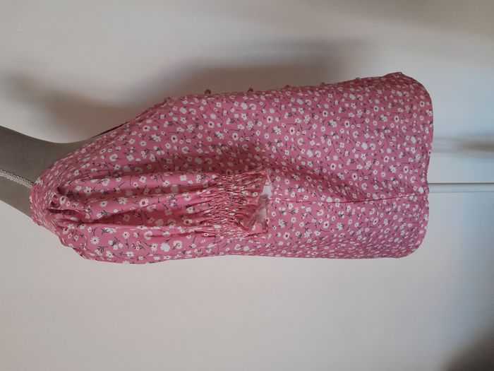 T-shirt, imprimé, manche courte smocké, bouton en déco devant Longueur : 63cm Aiss / Aiss : 50cm Matière : 100 % Polyester Marque : sans étiquette