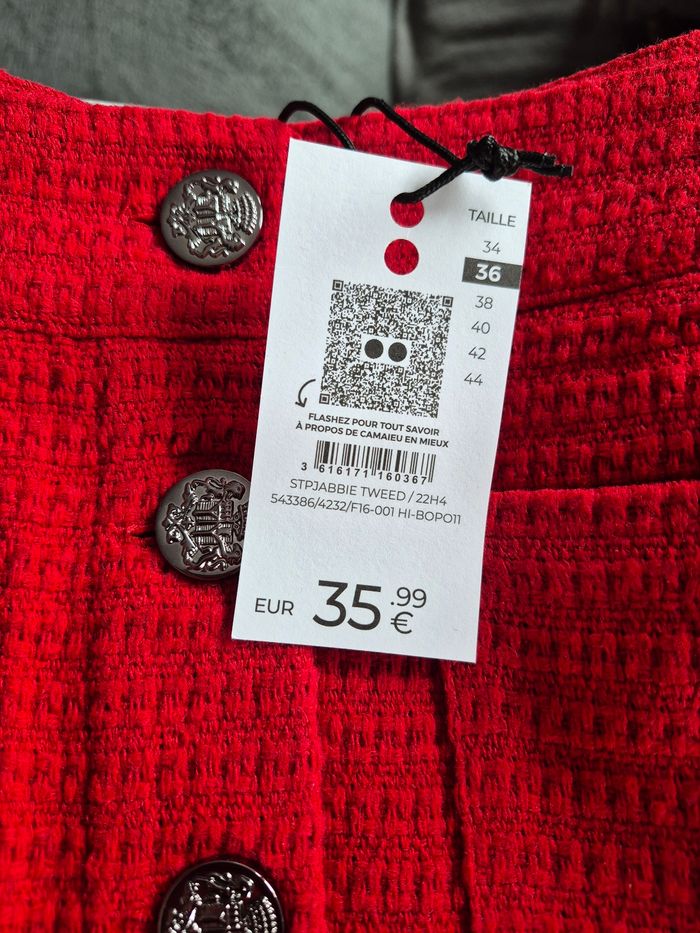 👘 Jupe Courte Rouge avec Boutons Femme 🔎 Taille 36 📏 Longueur de la jupe : environ 47 cm 💠 65% Polyester, 28% Acrylique, 4% Polyamide, 2% Viscose, 1% Laine 🏷 Etat neuf avec étiquette, sous blister 🚚 Envoi Rapide et Soigné