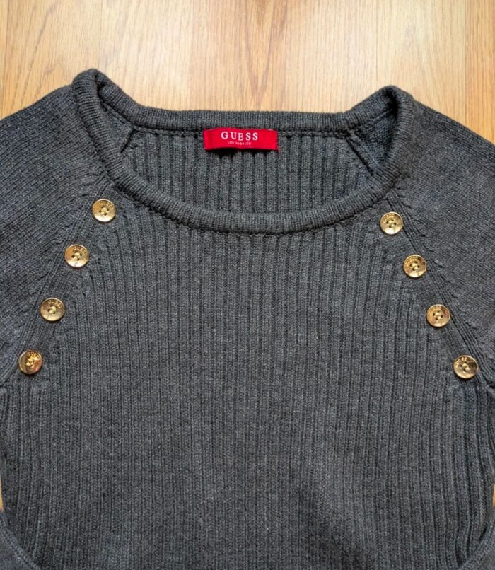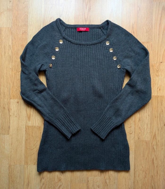 Pull Guess Los Angeles gris anthracite – Boutons dorés – Taille M - photo numéro 1