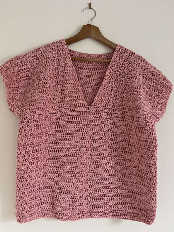 Pull loose fait à la main au crochet col V. Sa forme oversize lui permet de s'adapter de la taille S à la taille L dimensions du pull Tour de poitrine environ 104 cm (41 pouces) hauteur environ 62 cm (25 pouces) Lavage en machine 30°C sur programme délicat, pas de sèche linge Fabriqué dans un environnement non fumeur.