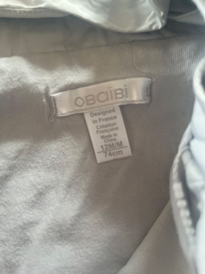 Coupe vent bébé garçon couleur gris avec ouverture asymétrique doublure en coton. Marque obaibi en taille 12 mois en très bon état