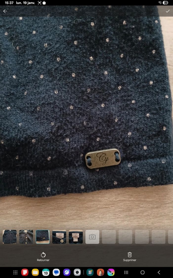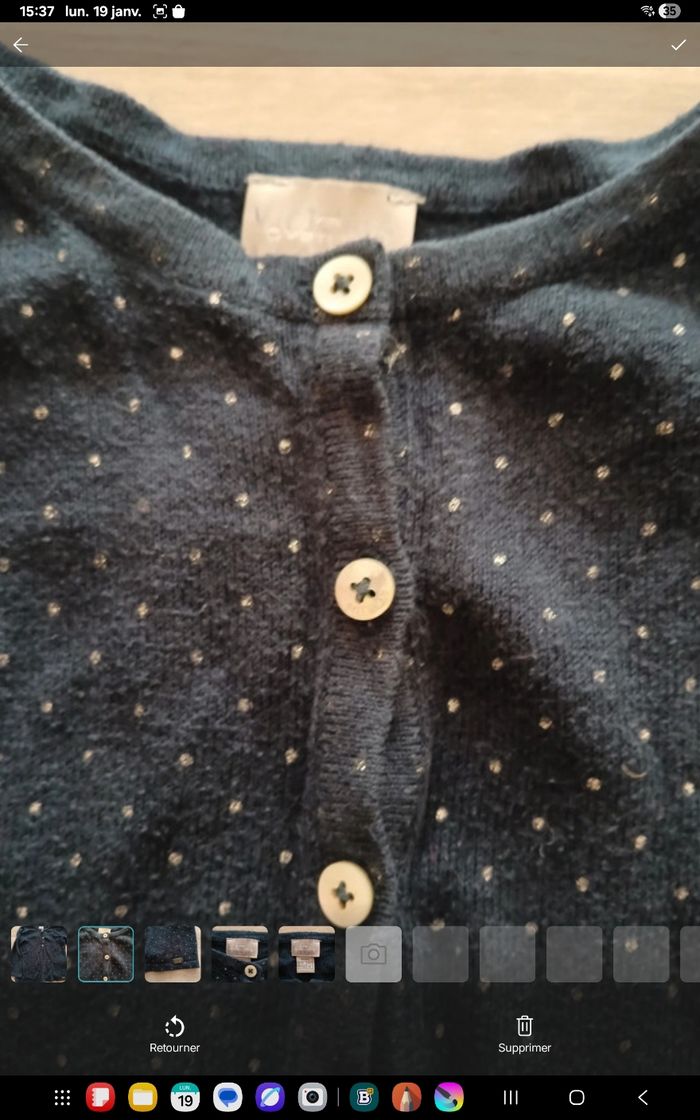 Gilet bleu foncé 3 boutons cyrillus 4 ans légèrement bouloché ecriture sur l'etiquette