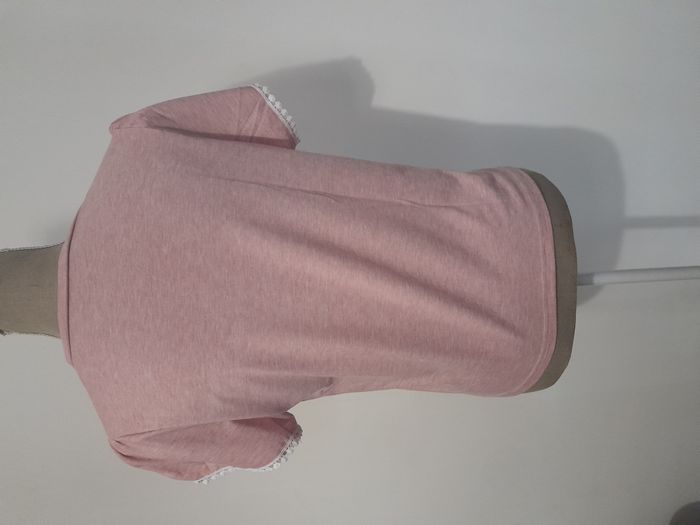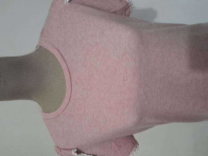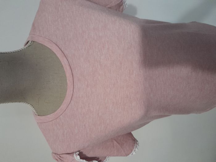 T-shirt, manche courte avec volant et broderie Longueur : 55cm Aiss / Aiss : 55cm Matière : 98 % Polyester, 2 % Elasthanne Marque : sans étiquette