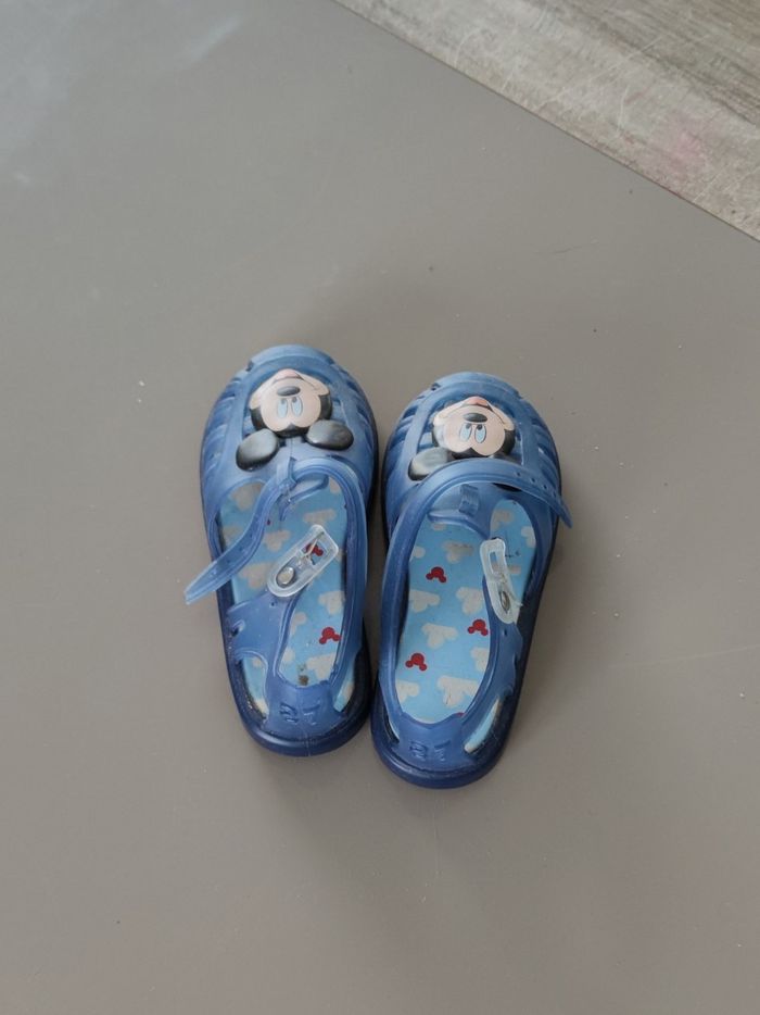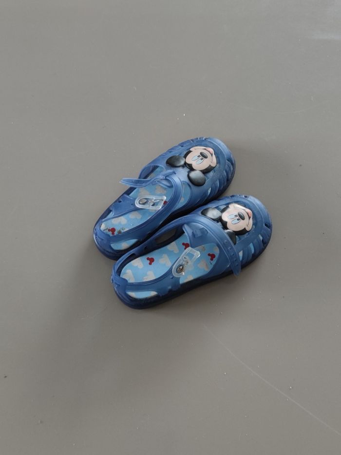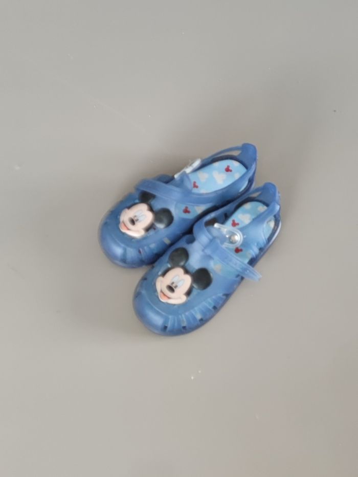 Sandale de plage pour garçon et/ou fille, couleur bleu, poiture 30. Sandale en bon état. Logo mickey sur le devant Longueur 17.5 cm Largeur 6 cm Prix 2€