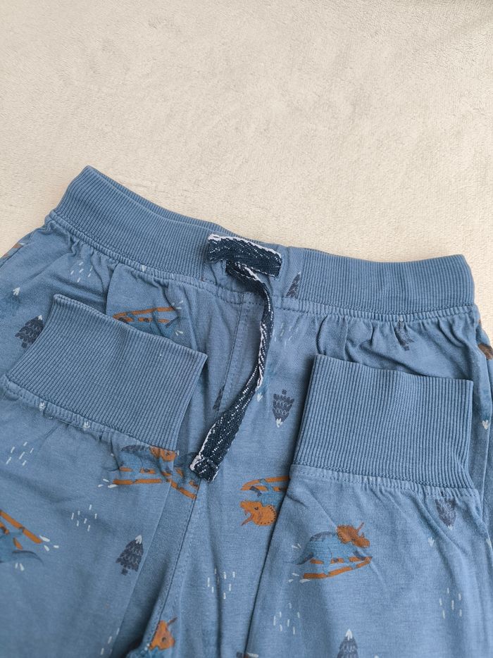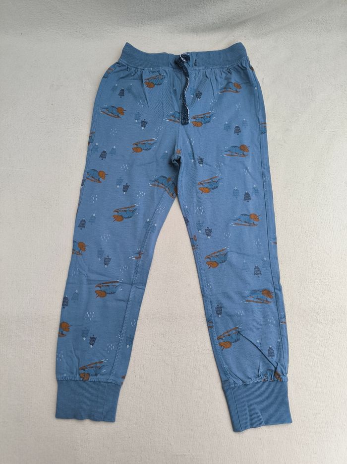 Pyjama deux pièces Marque Tape à l'œil Taille 8 ans, 128 cm Haut : • Coloris bleu, gris • Manches longues • Inscription "Sauve-ski-peuuut" broderie Yéti sur ski, imprimés sapins • Velours, doux • Imprimé craquelé Pantalon : • Coloris bleu, orange, blanc • Imprimés sapins, dinosaures • Taille élastique • Coton fin Haut et pantalon dépareillé En très bon état #evelyne_garcons_8ans #evelyne_garcons