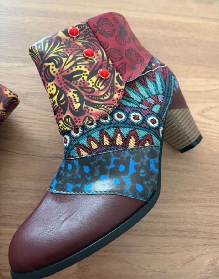 À vendre bottines originales, avec de jolies couleurs, talons. Neuves sans étiquette. Taille 41