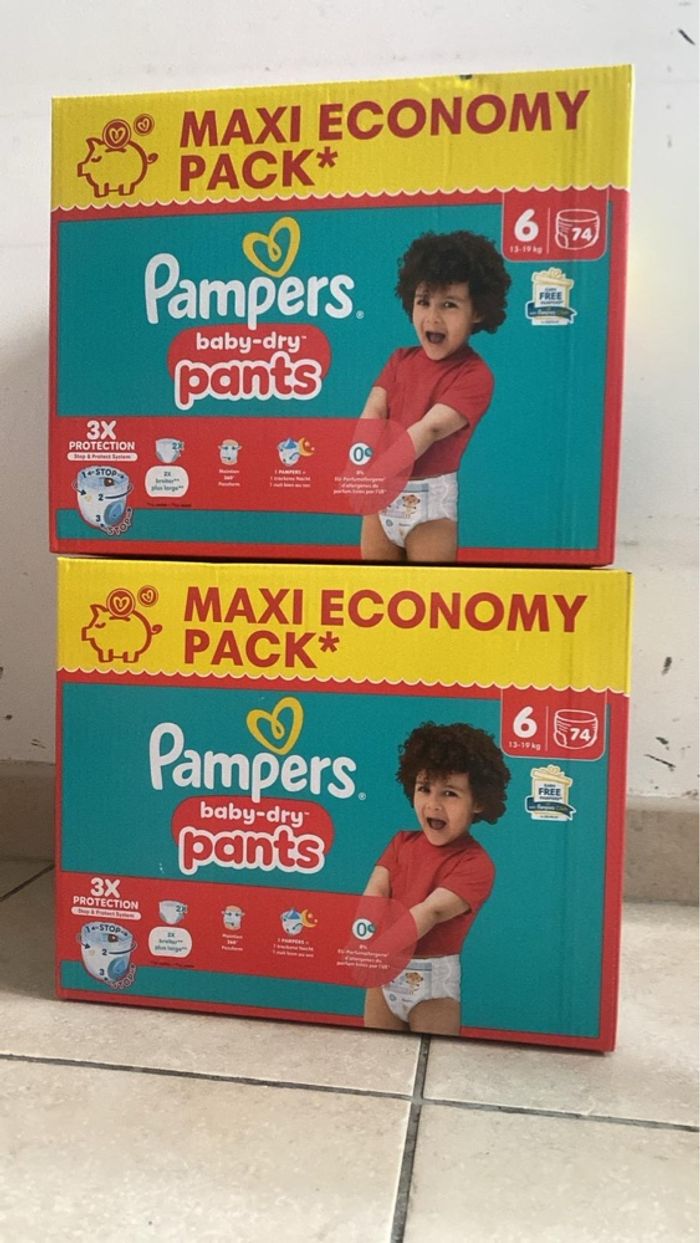 2 pack taille 6, 74 couches par carton