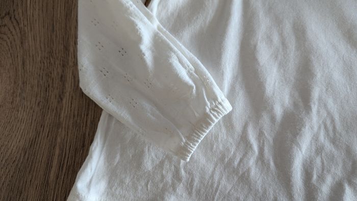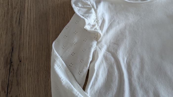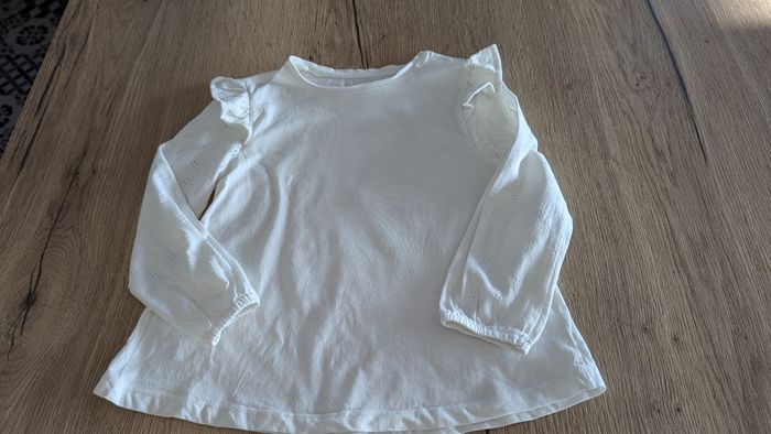 Haut fille blanc Vertbaudet 6 ans Manches ajourées et petit volant aux épaules T B Etat Prix: 3 euros