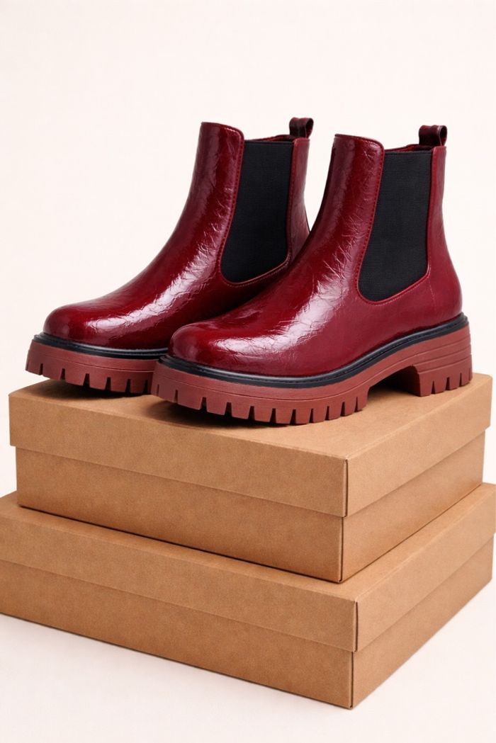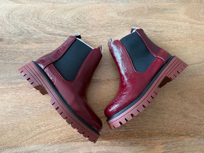 Jolies bottines effet vernis neuves sans étiquette Jamais portée Pointure 36 Couleur bordeaux