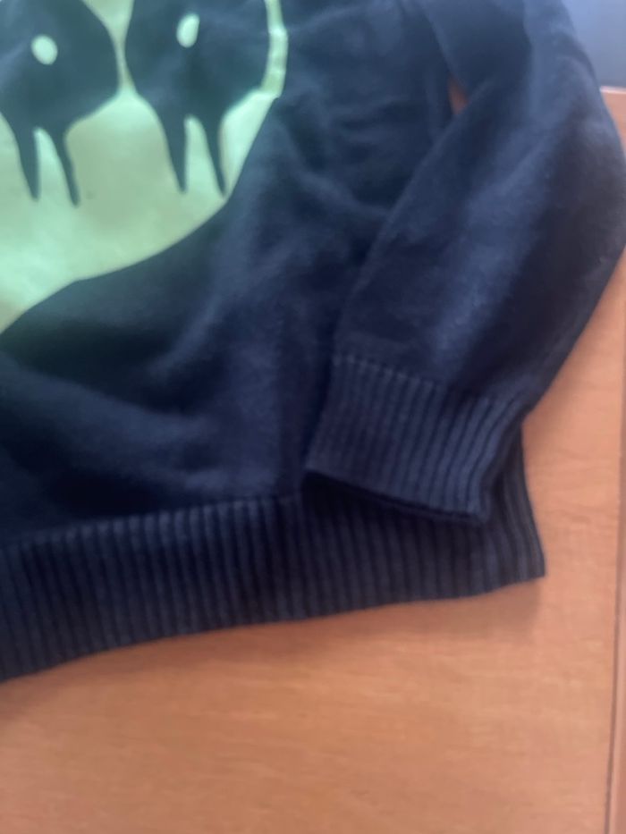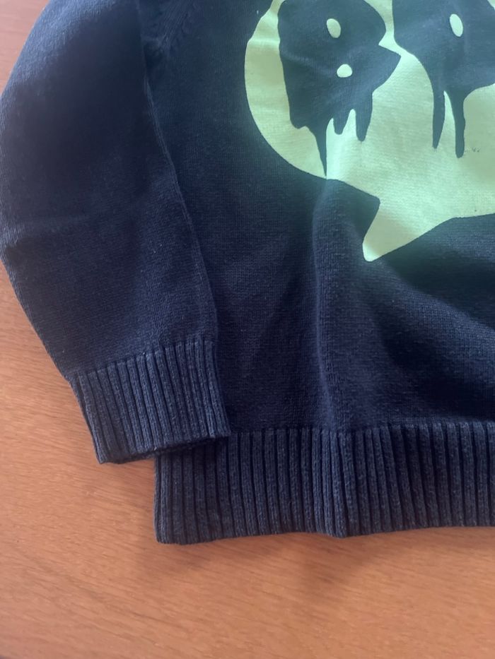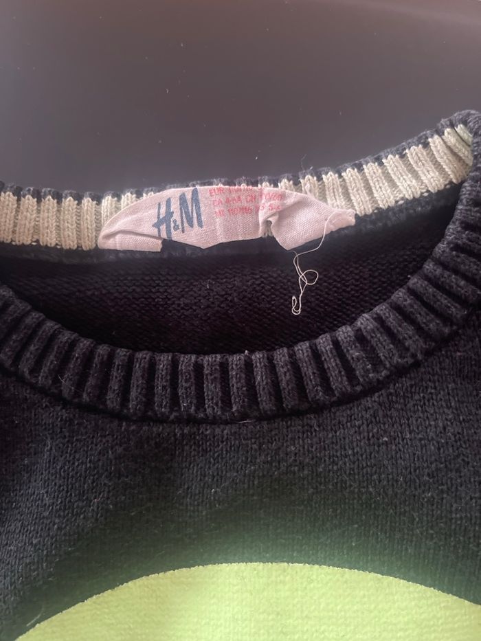 Pull noir avec logo fluo vert de la marque H&M en taille 4-6 ans. Logo légèrement abîmé voir photo