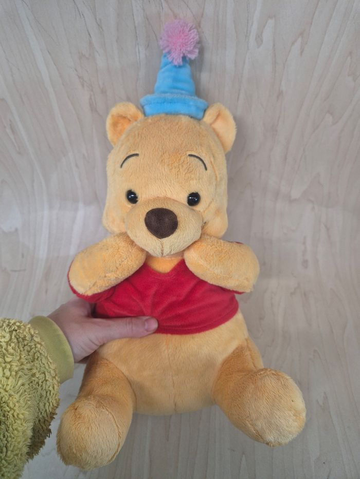 Peluche Winnie l'ourson Ichibankuji "Winnie the Pooh 95th anniversary". Peluche polyester, environ 38 cm. En très bon état, sans étiquette. Objet de collection à destination d'un public adulte, ne convient pas aux moins de 15 ans 🌸Les prix sont fixes, car ils intègrent les taxes auxquels les pros sont asujettis. Aucune offre ne sera acceptée qu'il s'agisse d'un lot ou d'un article à l'unité, merci. 🌸N'hésitez pas à vérifier la disponibilité de l'article avant de procéder à l'achat.