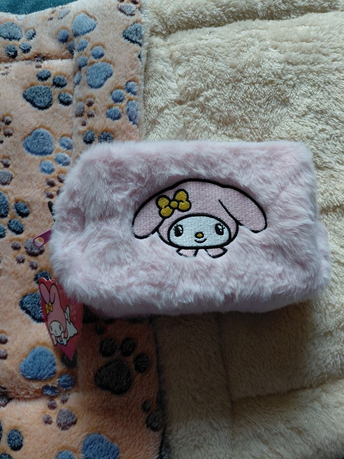 Je vends cette trousse My Melody, toute mignonne et en parfait état. - Type de produit : Trousse - Marque : My Melody - Matière : Fourrure rose pâle - Motif : Personnage My Melody brodé État neuf