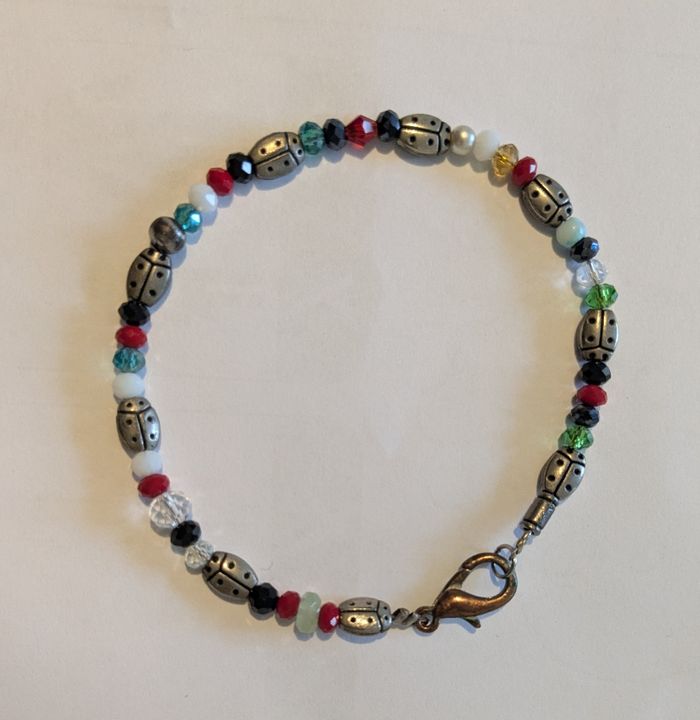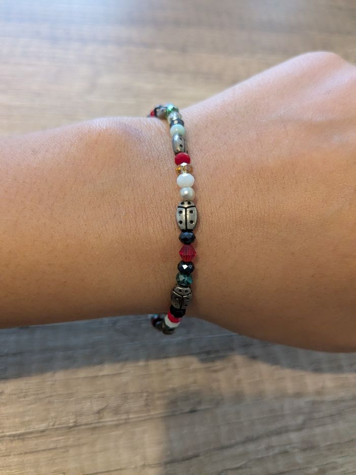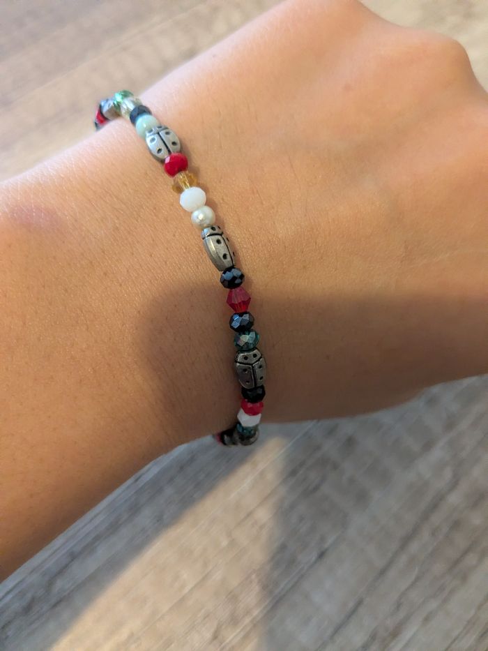 Bracelet colorié coccinelles et pierres - photo numéro 1