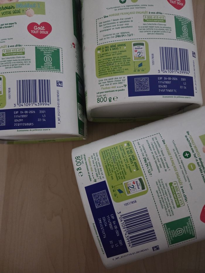 5 boîtes de Bledilait 1er âge. Boîtes neuves, opercules scellées. DLC : les 5 le 04/08/2026