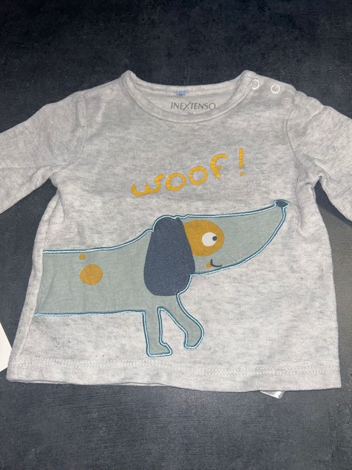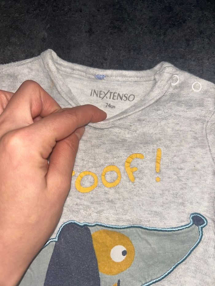 Haut de pyjama bébé Couleur gris Motif chien 2 pressions sur l’épaule Taille : 9 mois/69 - 72 cm