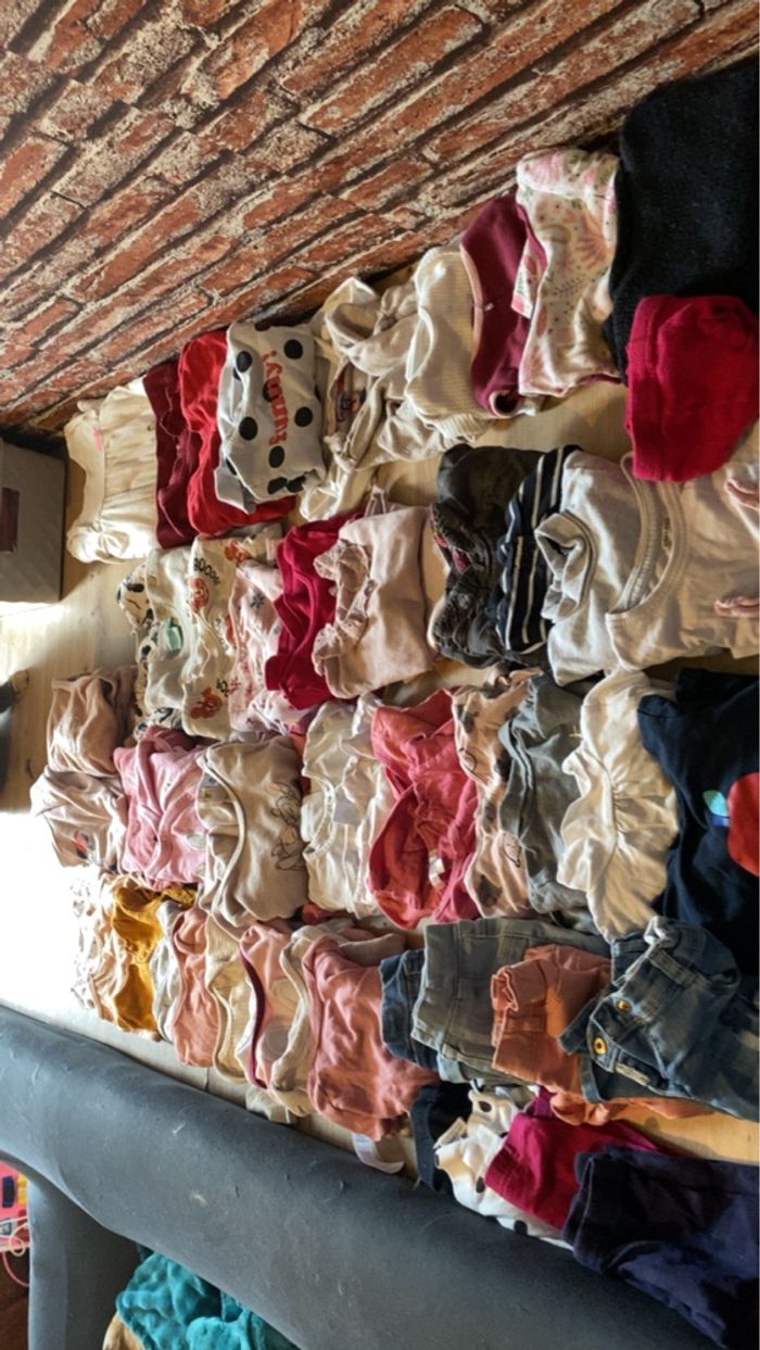 Lot fille 6/9 et un peu de 12 mois 85 pièce au total peu comporter quelque tache que je n’aurai pas vu dans l’ensemble très peu porter voir pas du tout