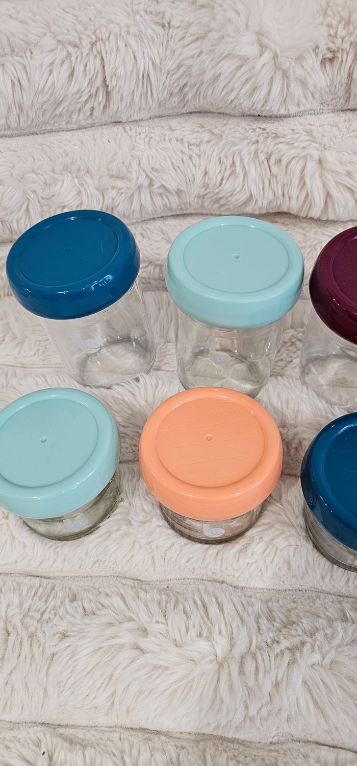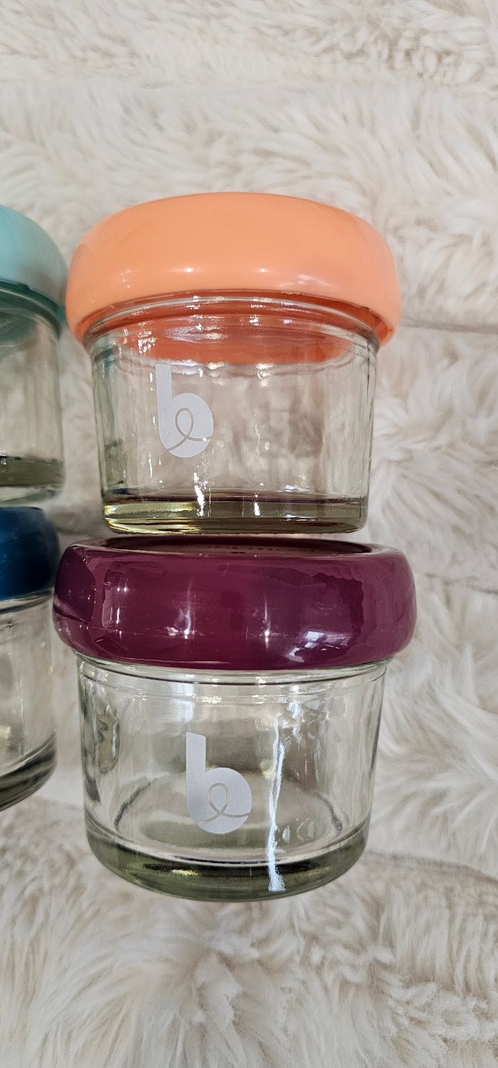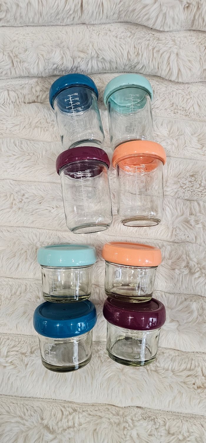 Lot de 8 pots en verre Babybols babymoov. ☆ 4 pots de 60ml ->100ml ☆ 4 pots de 160ml->220ml. ☆ Graduations intactes. ☆ Aucun defaut. ☆ Très bon état.