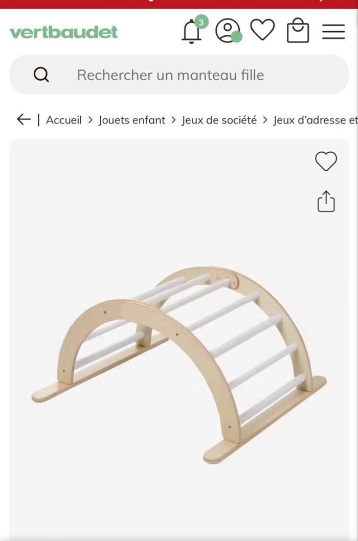 Bonjour, je vends un pont d’escalade neuf jamais ouvert encore dans le carton Marque verbaudet