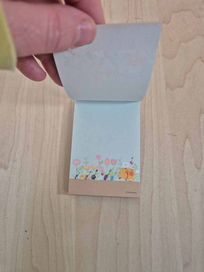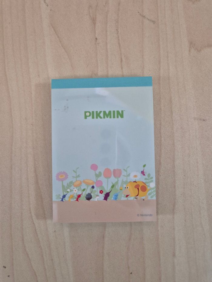 Mini bloc memo Pikmin. Papier, environ 9 x 7 cm. En parfait état (jamais utilisé). 🌸Les prix sont fixes, car ils intègrent les taxes auxquels les pros sont asujettis. Aucune offre ne sera acceptée qu'il s'agisse d'un lot ou d'un article à l'unité, merci. 🌸N'hésitez pas à vérifier la disponibilité de l'article avant de procéder à l'achat.