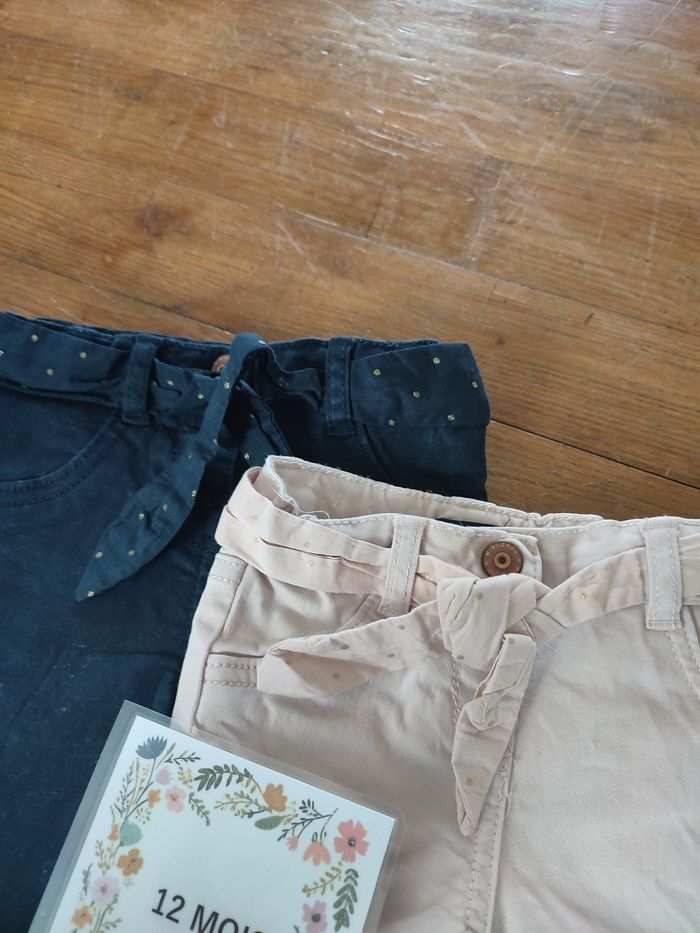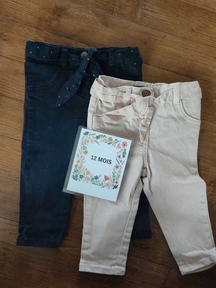 Lot de deux pantalons avec ceinture tissu 12 mois Kiabi