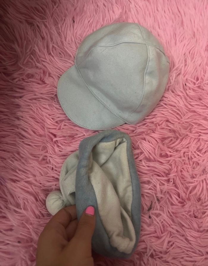 Bonnet + casquette pour bébé taille naissance de couleur bleu identique au photo posté la casquette en très bonne état et le bonnet en bonne état . #bonnetbebe #Casquettebebe #naissance #baby