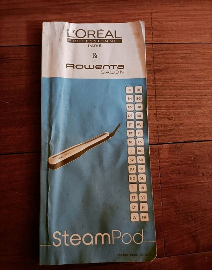 1 lisseur SteamPod de Karl Lagerfeld manque 1 dent au peigne. Neuf, jamais utilisé, le lait vapo-activé est neuf. Un peu décousu au niveau de la ferméture éclair de la trousse de transport. 3 positions de température: 180°,200°,210°.