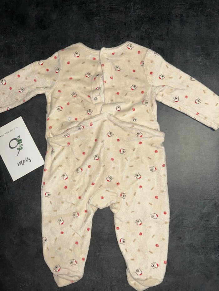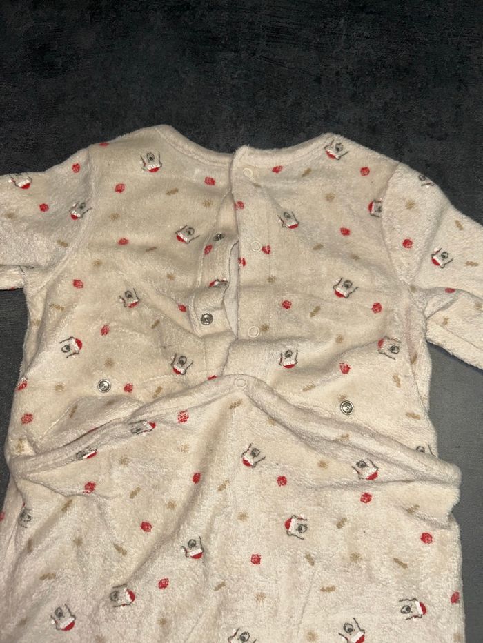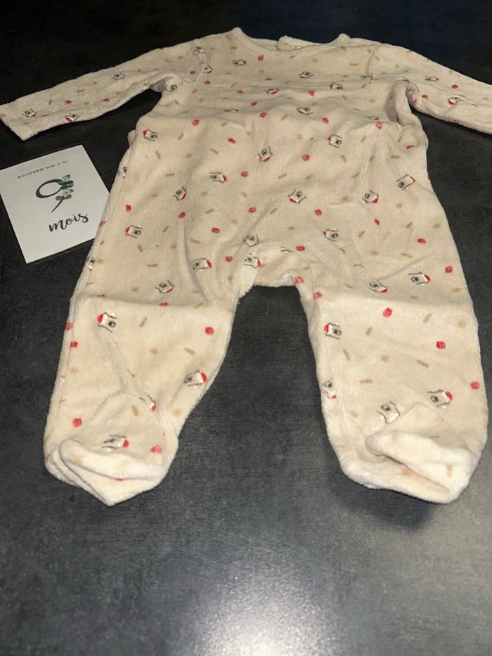 Pyjama bébé avec pieds Couleur : crème Motif de Noël Ouverture à l’arrière par pressions Taille : 9 mois / 71 cm Mixte : peut convenir à une petite fille ou à un petit garçon