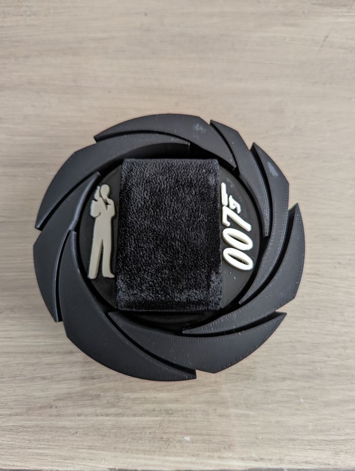 Présentoir de montre sur le thème du célèbre agent 007. Idéal pour rendre hommage aux nombreuses montres portées par James Bond tel que Submariner, Gruen Précision, Seiko ou autre Seamaster Professional. La vente comprend le présentoir en bioplastique issu d'un processus d'impression 3D et le coussin de présentation en velours. 🚨Attention la montre ne sera pas fournie.🚨
