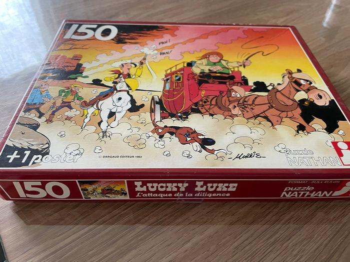 Puzzle lucky luke , l’attaque de la diligence 1984 Nathan- Dargaud Il manque une pièce dans le coin /150 pièces Voir photos