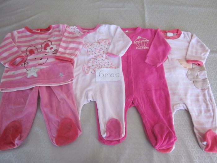 6m, 4 pyjamas velours dont un 2 pièces, tissaia ...