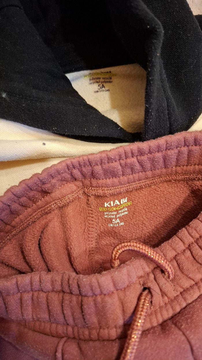 Survêtement coton épais kiabi pour fille taille 5 ans ( mais le pantalon est plutôt court ) . Légère Déchirure sur la couture de l'épaule droite. Idéal pour l'école sans craindre d'abîmer ses vêtements #4ansfille #fille4ans #hiverfille4ans #kiabifille4ans #kiabifille #joggingfille
