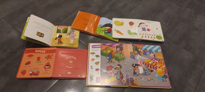 2 livres P'tit loup état neuf Cherche et trouve P'tit loup TBE Mon livre des odeurs et des couleurs TBE Mon imagier du jardin abîmé